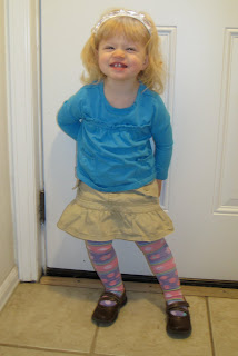 She finally had her 2-year-old check-up this month and all is well. At least then it was! During April she had pink eye, the flu and a nasty cold/cough. Yuck! Anyway, at her check-up she was 34 inches tall and 28.6 pounds. That's 45th percentile for both. Two weeks after her check-up she is on meds for a case of tonsillitis. The fun just never ends for her!